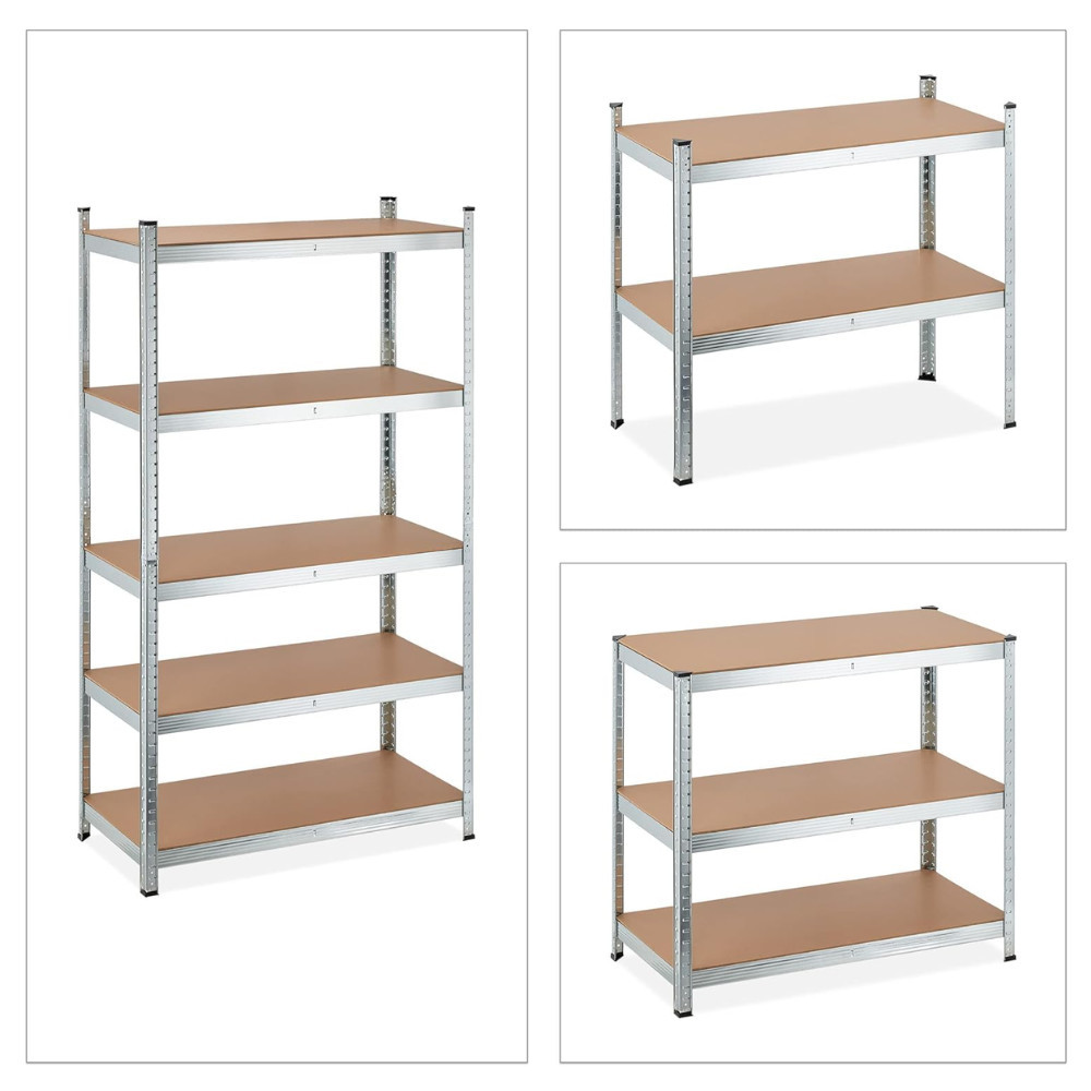 200 x 120 x 50 cm méretű horganyzott acélvázból álló tároló polc, 5 polccal. Csavarozás nélkül, egymásba illeszthető elemekből összeállítható, ahol a polcokat tetszőleges magasságban helyezhetjük el. Ideális tároló polc garázsokban, műhelyekben, kamrákban. Az állvány teherbírása polconként 175 kg egyenletes súlyelosztás esetén. Egyszerű és gyors összeszerelés szerszámok és csavarok nélkül, az egymásba illeszthető rendszernek köszönhetően.