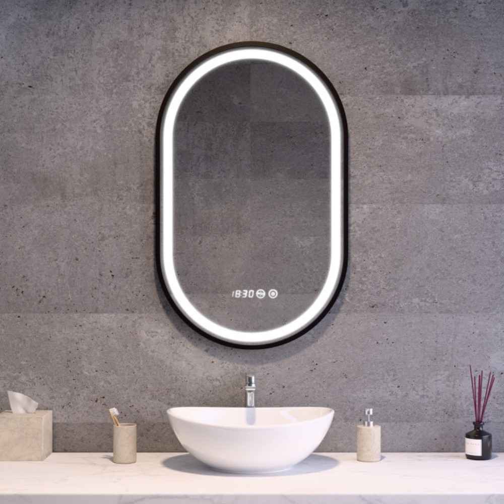 Fürdőszobai LED tükör | Páramentesítő funkció | Beépített óra | Fényerő és színhőmérséklet szabályozás| Kedvező áron | Készletről | Gyors kiszállítással