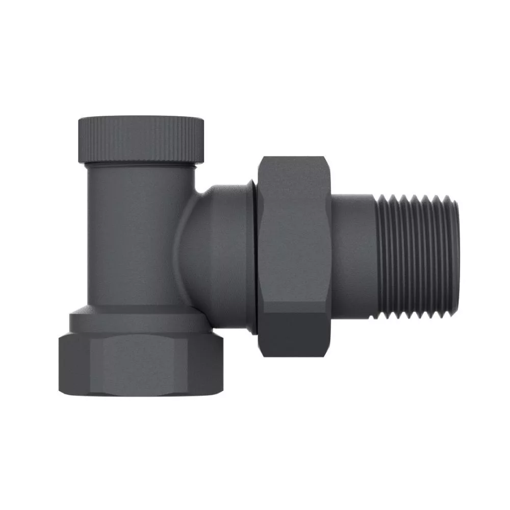 NERO Italia LCK-G radiátor sarokszelep visszatérő ághoz. Fűtőtest csatlakozó csavarzat kónuszos fémtömítéssel. Univerzális kialakítás, menetes- és szorítógyűrűs csőcsatlakozásra. Szürke felület nagy tartósságú porfestéssel.