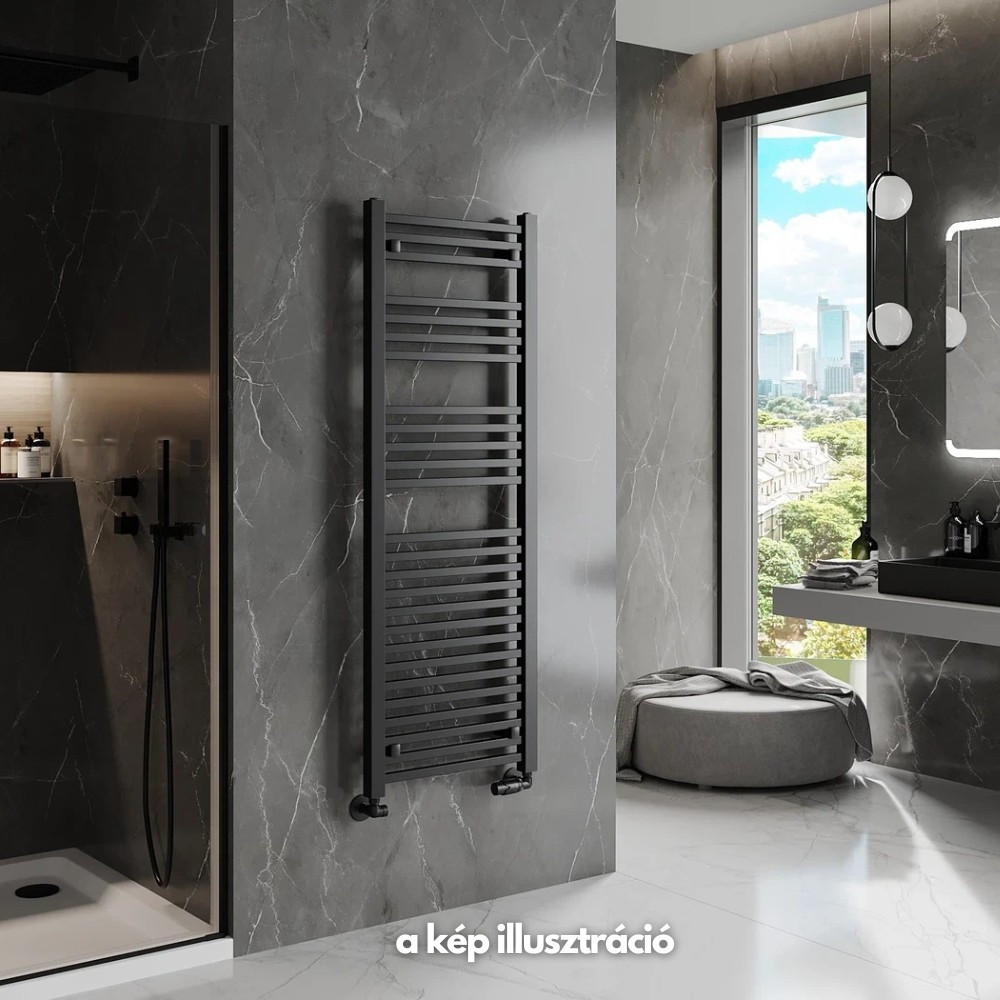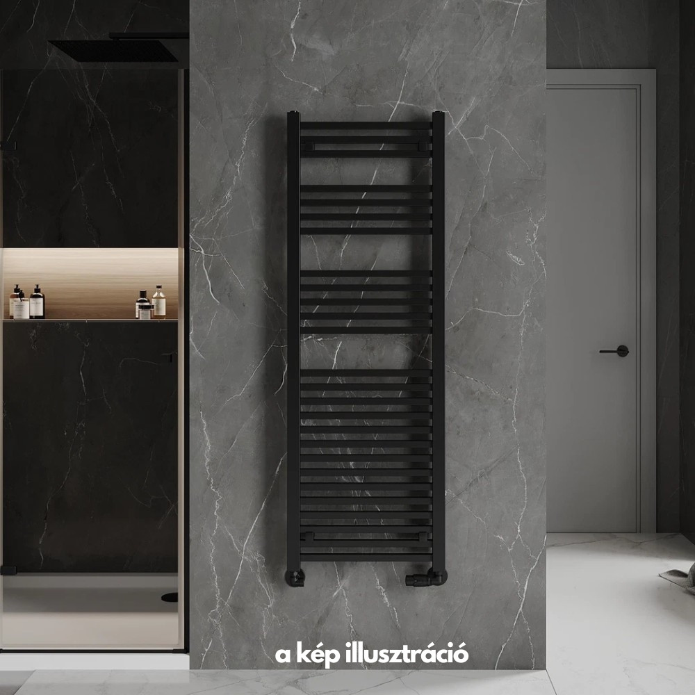 Fürdőszobai elektromos törölközőszárítós szögletes design radiátor 500 x 1500 mm-es méretben, 600W teljesítménnyel fekete színben | Kedvező áron | Készletről | Gyors kiszállítással