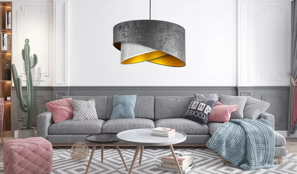 KÉSZLETKISÖPRÉS! Duo szürke textil búrás függőlámpa Glimex Abazur Premium 1xE27 GA0119