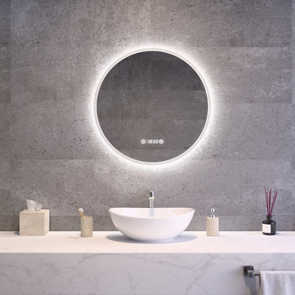 Kerek Led tükör Ø60cm Welland Alpha | Páramentesítő - Óra - Fényerő + színhőfok állítás