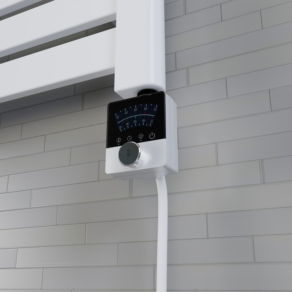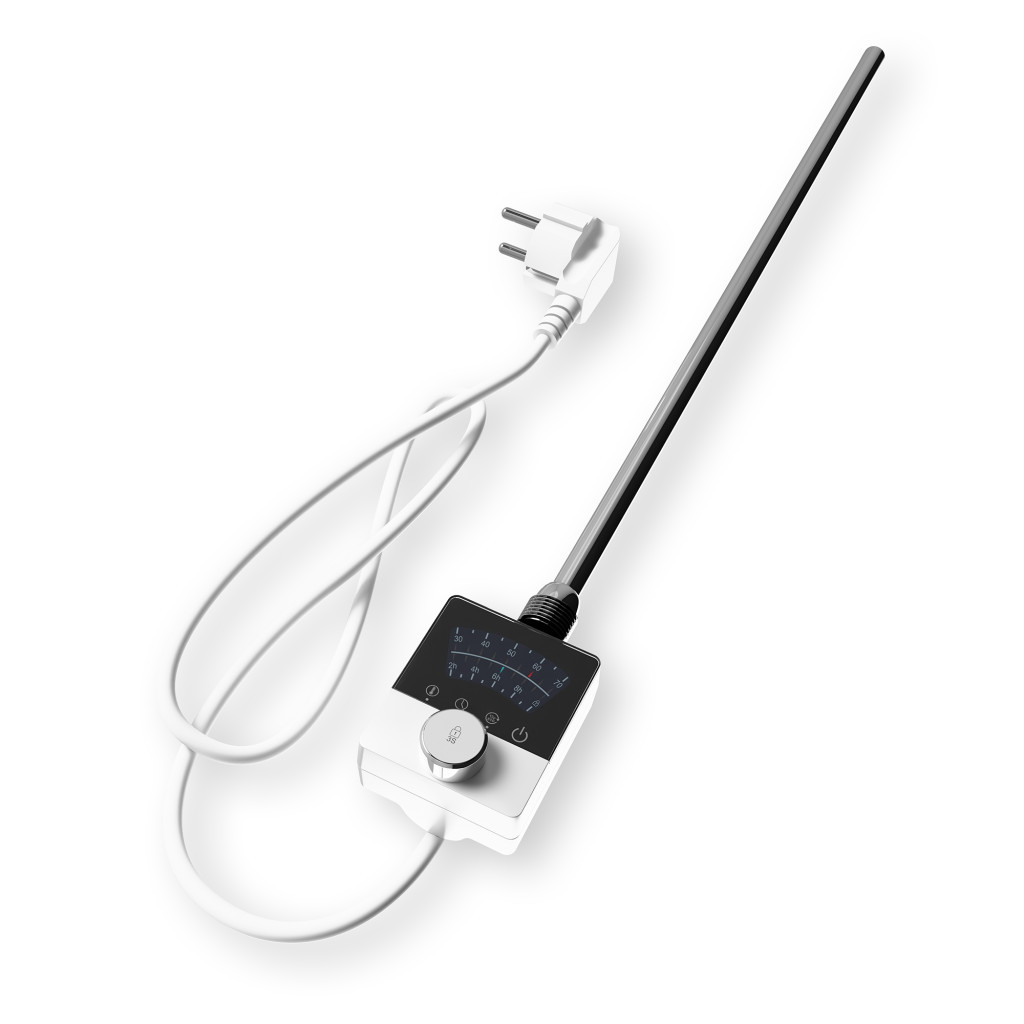 Nero Italia AF13 elektromos radiátor fűtőbetét / fűtőpatron törölközőszárító vagy design radiátorokhoz. Prémium kategóriás fűtőbetét, minőségi anyagokból, megbiztható vezérlővel, modern formatervezéssel. A készüléken található nyomógomb segítségével a fűtőbetét működésbe hozható, vagy kikapcsolható.
