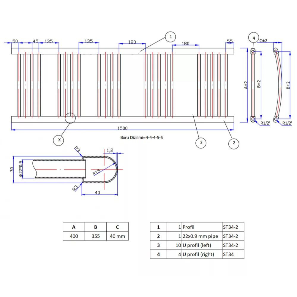 Törölközőszárító radiátor 60 x 150 cm - Nero Italia (szürke)